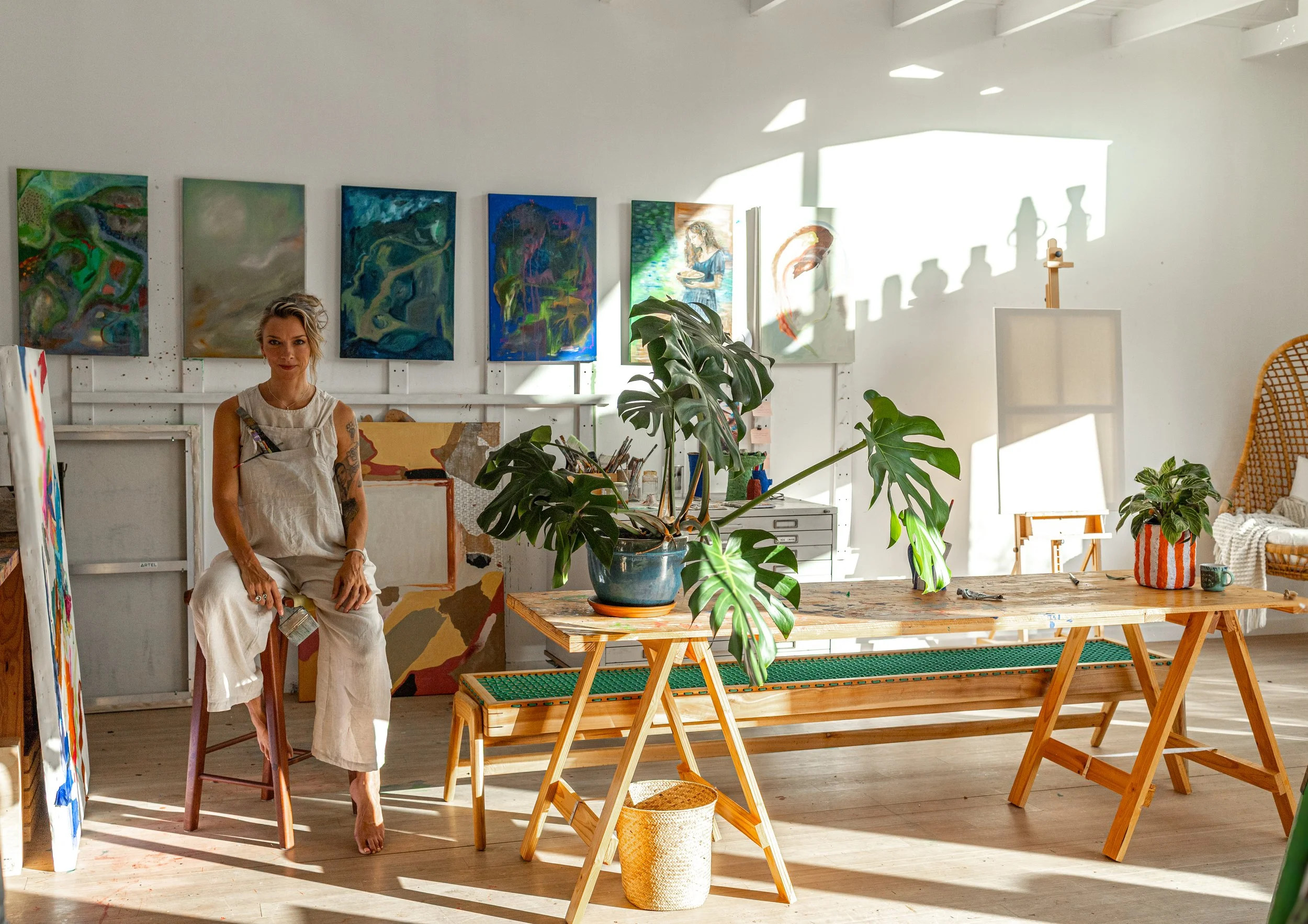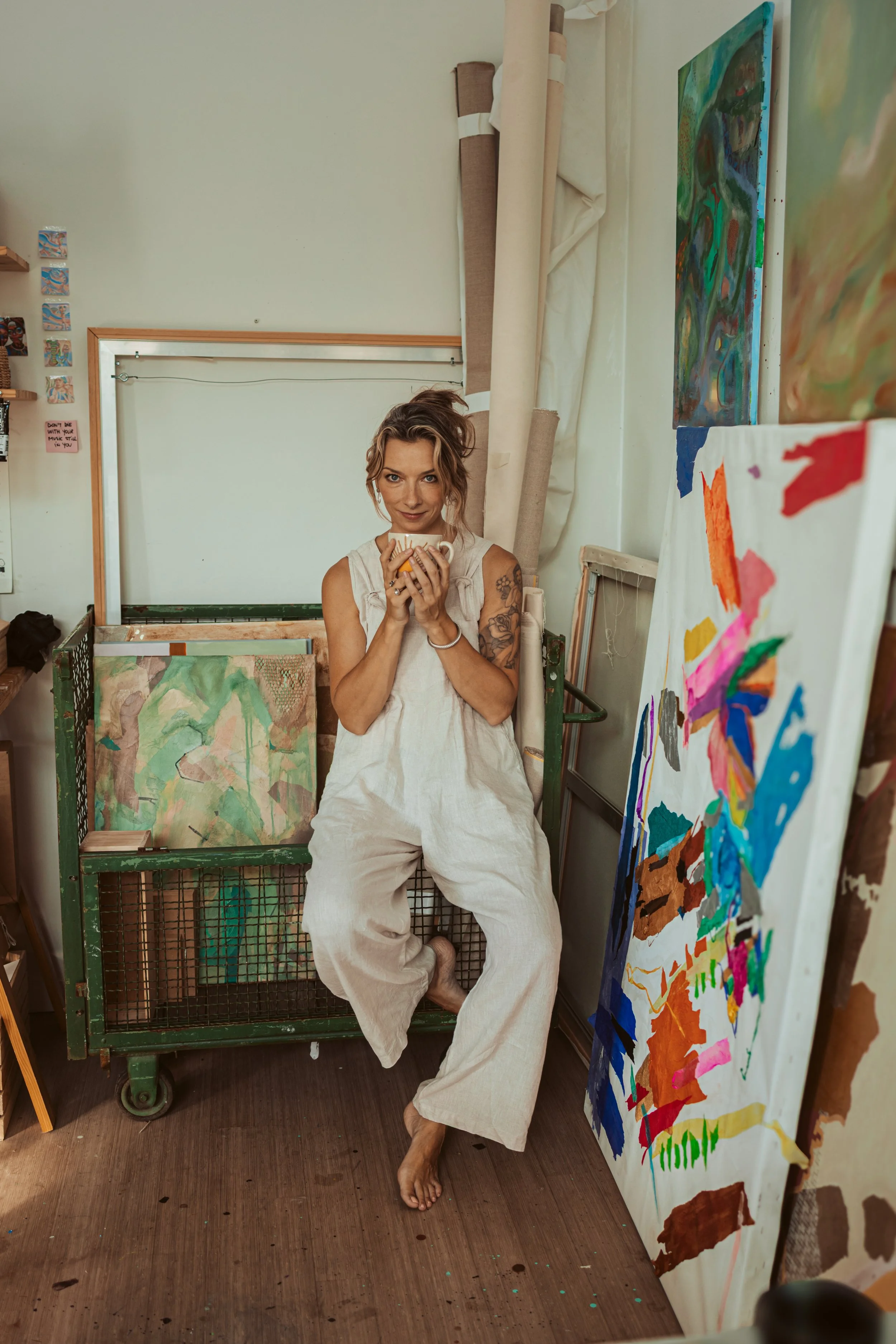 My work lives between studio and ritual, inviting people to reconnect with their creative voice and inner truth.